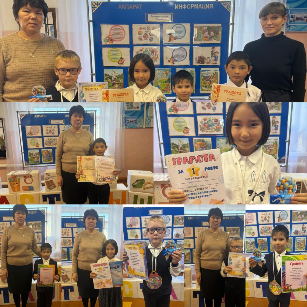 1–4 сынып оқушылары түрлі байқауларға қатысқандары үшін грамоталармен және тәтті сыйлықтармен марапатталды.