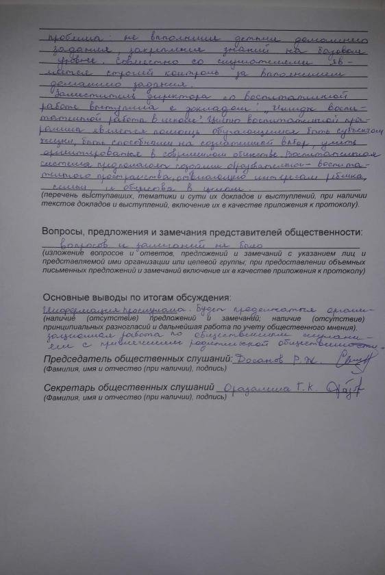 8 ноября текущего года в школе прошли общественные слушания перед родительской общественностью.